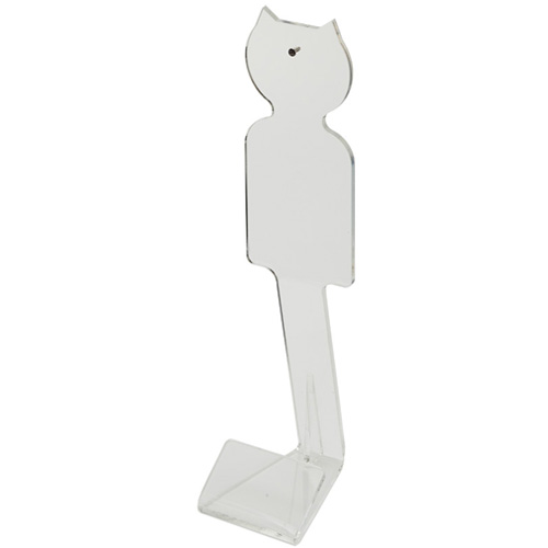 The Kitty-Cat Clock stand is made from a solid piece of clear acrylic. With this large 12 inch stand you can hang your Kitty-Cat Clock securely anywhere you please—not just on a wall.